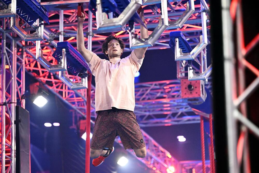 Omid Bayat lässt seinem Superman-T-Shirt Taten folgen. Der 39-Jährige ist ein "Ninja der zweiten Stunde", wie Buschi sagt, war zwischen der 2. und 7. Staffel fünfmal dabei und kehrt jetzt nach dreijähriger Pause zurück. Und wie: Er schafft es bis zur 3. Landezone des Luft-Surfers. Damit steht er im Halbfinale. Comeback geglückt.
