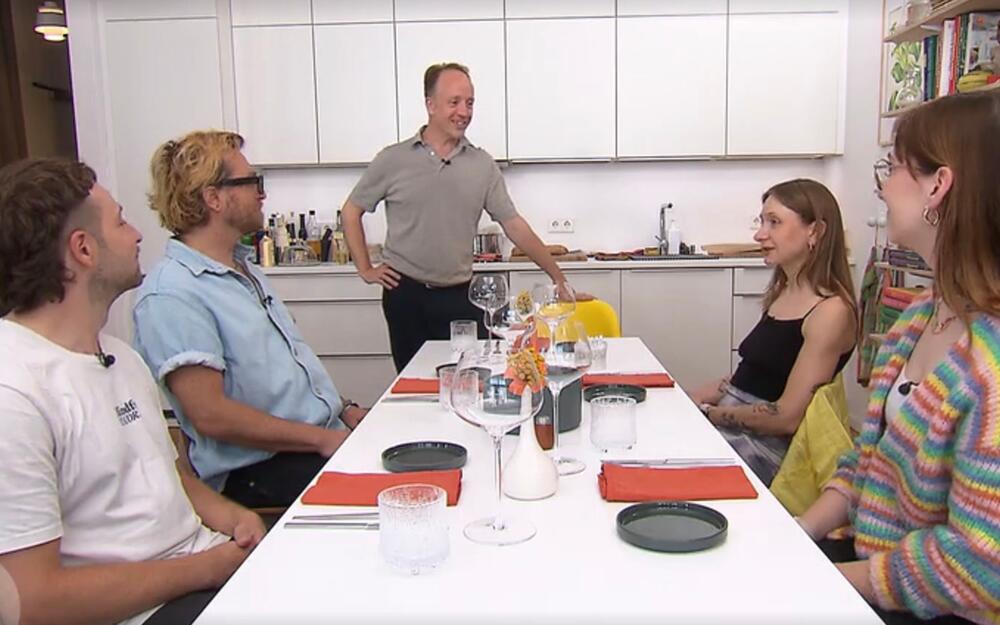 "Die geräucherte Karotte ist mega", kommentiert Dustin die "Bruschetta Three Ways", die Stephen als erstes auftischt. "Er ist cool, ein richtiger Stimmungsmacher", loben Lina und Marie ihren Gastgeber, der sogar eine kleine Akustik-Performance gibt. Eine "Landkarte" führt die Runde ausserdem durch die Wohnung und erklärt die vielen Kunstobjekte.