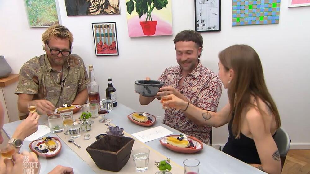 Als Dustin auch noch Maries Nachspeise - Malabi mit Pflaumen-Estragon-Sirup - als "Möchtegern-Panacotta" und "schwächsten Gang" bezeichnet, streicht ihm die Gastgeberin kurzerhand den Wein. Ernst ist das jedoch nicht gemeint. So sammelt Marie auch von Dustin neun Punkte und sichert sich insgesamt starke 37 Punkte und vorläufig Platz eins.