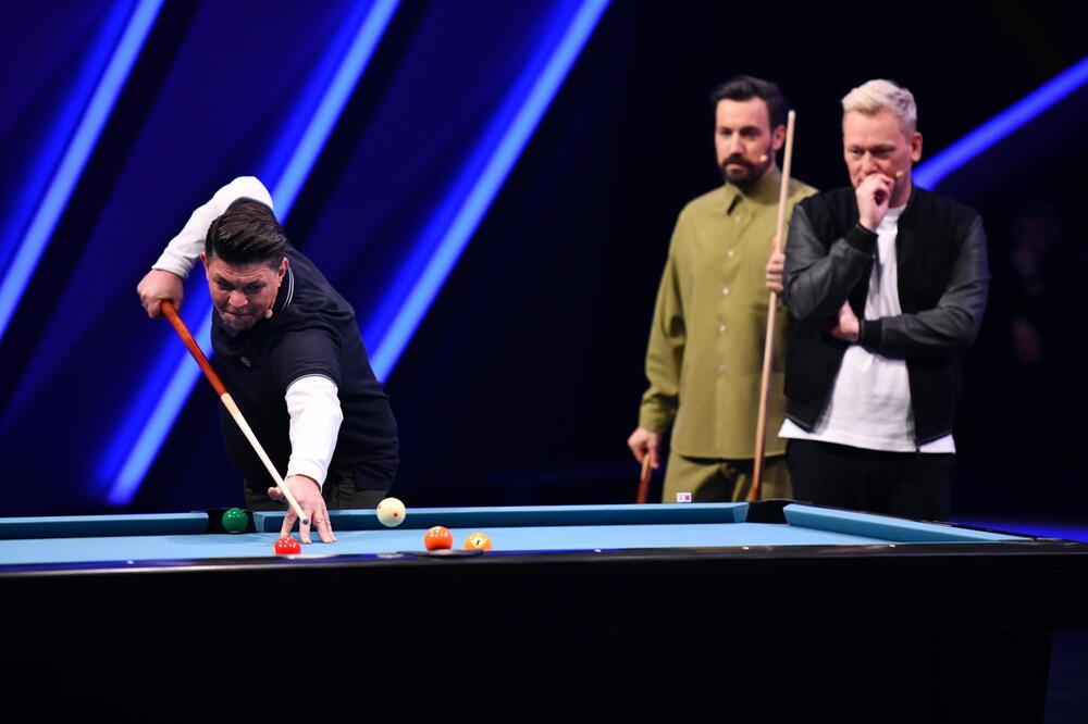 Welche Kugel rollt in welches Loch? Die Drei überlegen, wie Mälzer die weisse Kugel anspielen soll. Knossi feuert ihn an: "Tim, das ist deine Disziplin. Wir verlassen uns auf dich!" Tatsächlich schafft Mälzer einen Trick nach dem anderen. "Wow! Amazing!", lobt sogar der Billard-Profi.
