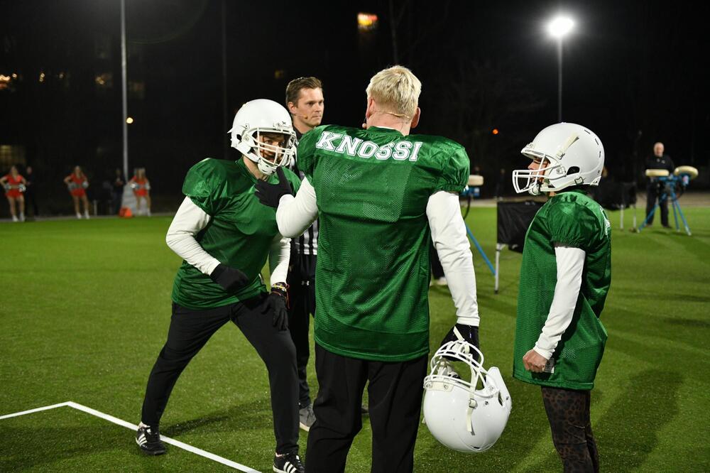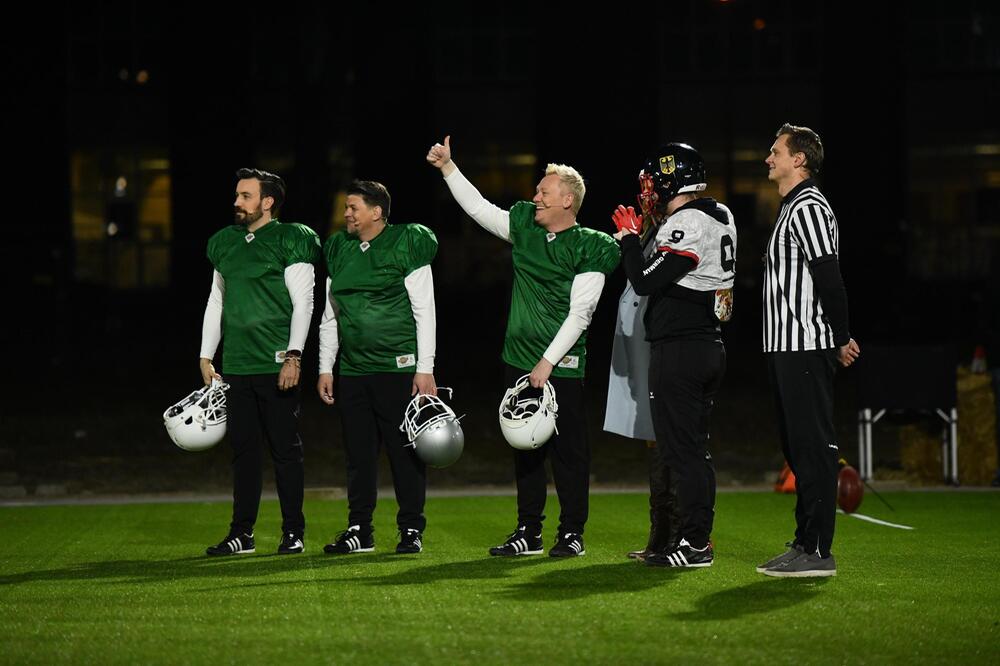 Spontan ersetzt Joker Sabrina "Mocki" Mockenhaupt den verletzten Mälzer. Der humpelt nach kurzer Behandlung der Sanitäter über den Platz. "Hat sich wie so ein Pferdekuss angefühlt", beschreibt er den Schmerz. "Tut weh bei jeder Belastung gerade." Die Challenge geht ganz klar an den Football-Meister.
