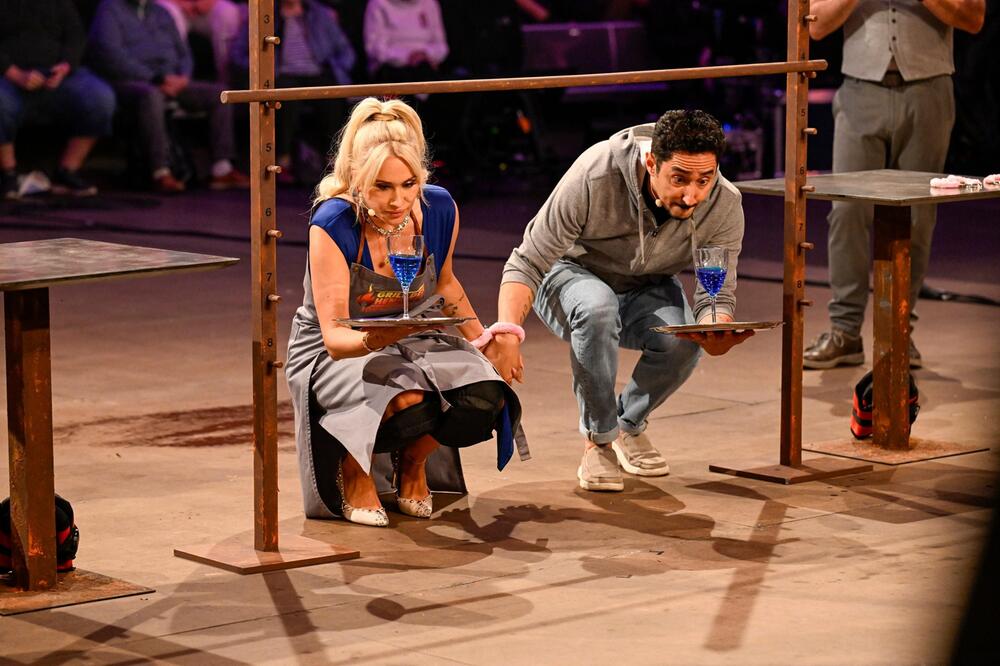 Eko Fresh, bürgerlich Ekrem Bora, und seine Sarah machen und tun - aber Koch-Coach Hans Neuner ist mit der Gesamtsituation unzufrieden: "Ach Gott im Himmel!", barmt er, "die machen mich wahnsinnig". Moderatorin Wontorra feixt: "Hans ist jetzt schon so genervt - warte mal ab, wenn Verona in der Küche steht." Aber erst muss mal die Jury ran!