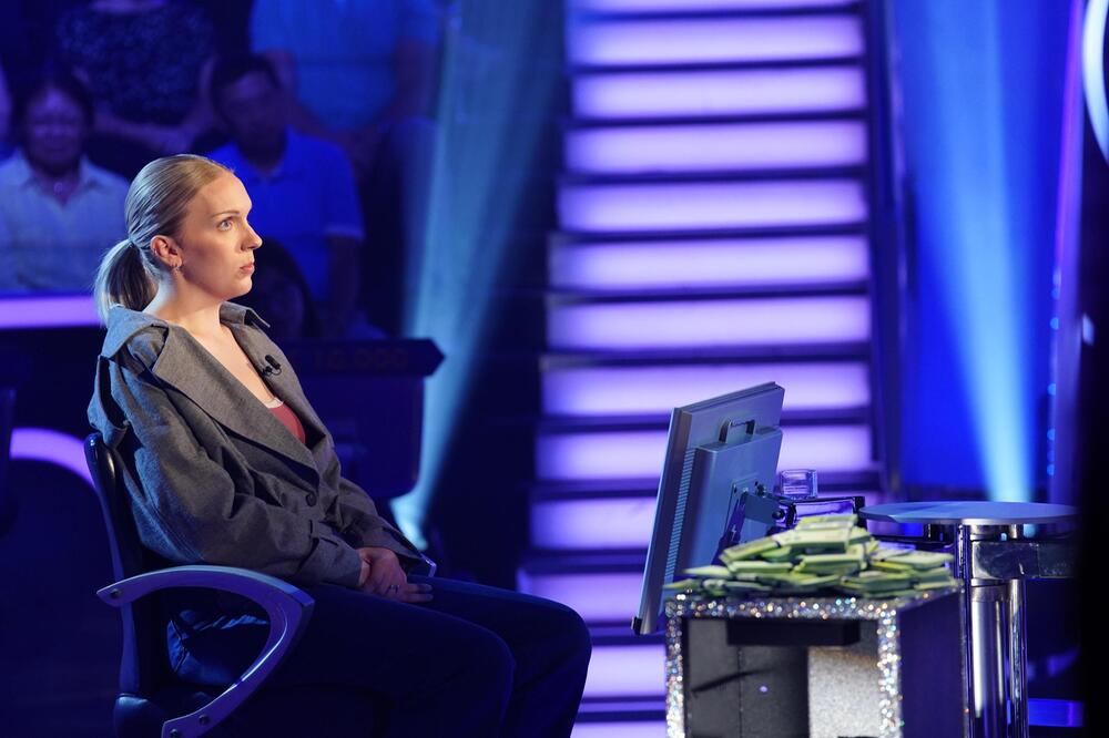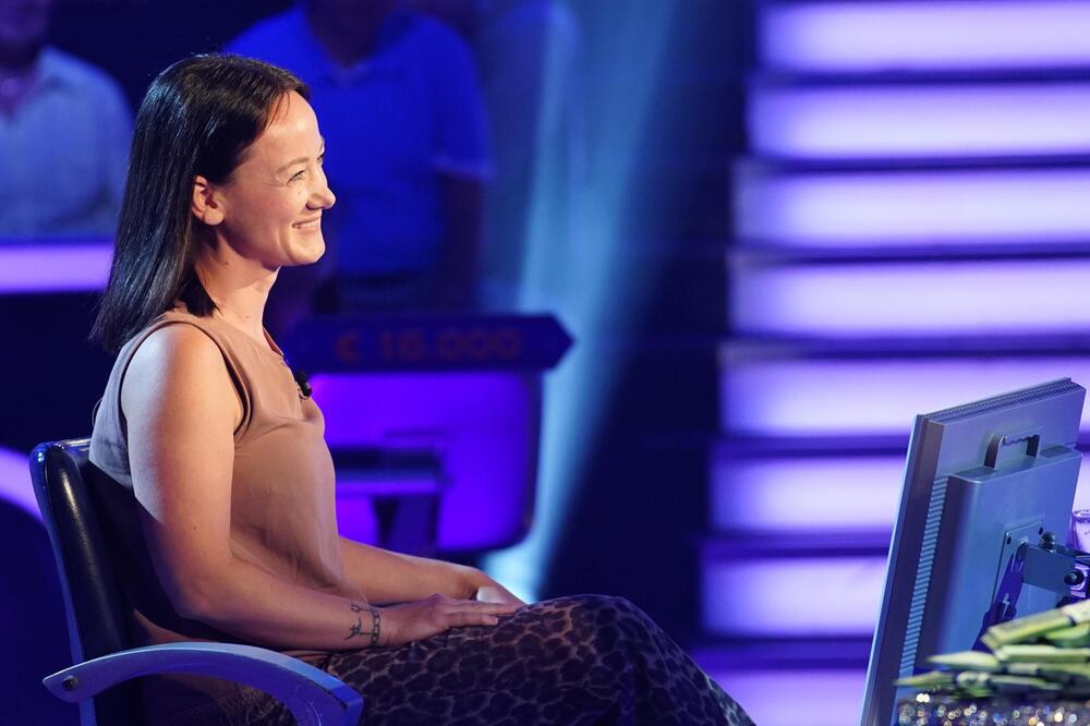 Auch Olivia Reichert nimmt ohne garantiertes Startgeld noch mal auf dem Stuhl Platz und riskiert den Verlust von 16.000 Euro aus der letzten Show. Die quizzt sie locker wieder rein.