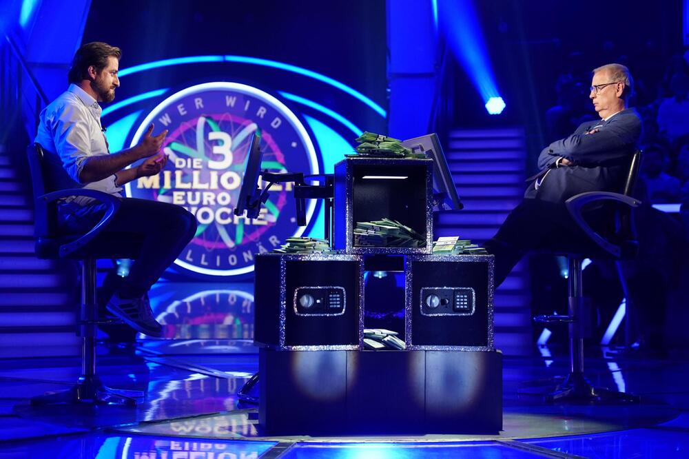 So hat sich Christopher Suhr (l.) aus Wedemark das nicht vorgestellt: Ausgerechnet in der 3-Millionen-Euro-Woche von "Wer wird Millionär?" lässt ihn seine Mutter als Telefonjoker im Stich.