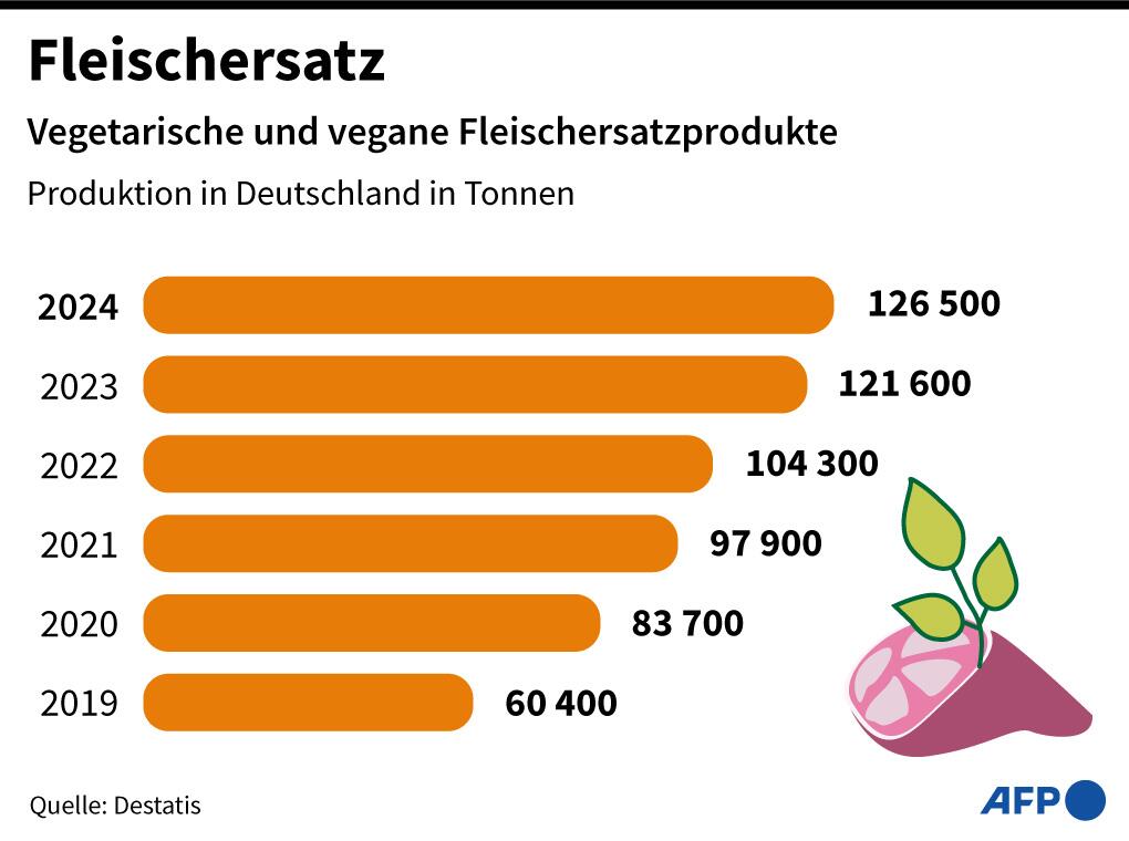 Deutschland ist der grösste Markt für pflanzliche Alternativprodukte in Europa. 2024 wurden hierzulande rund 121.600 Tonnen Fleischersatz hergestellt - doppelt so viel wie 2019.
